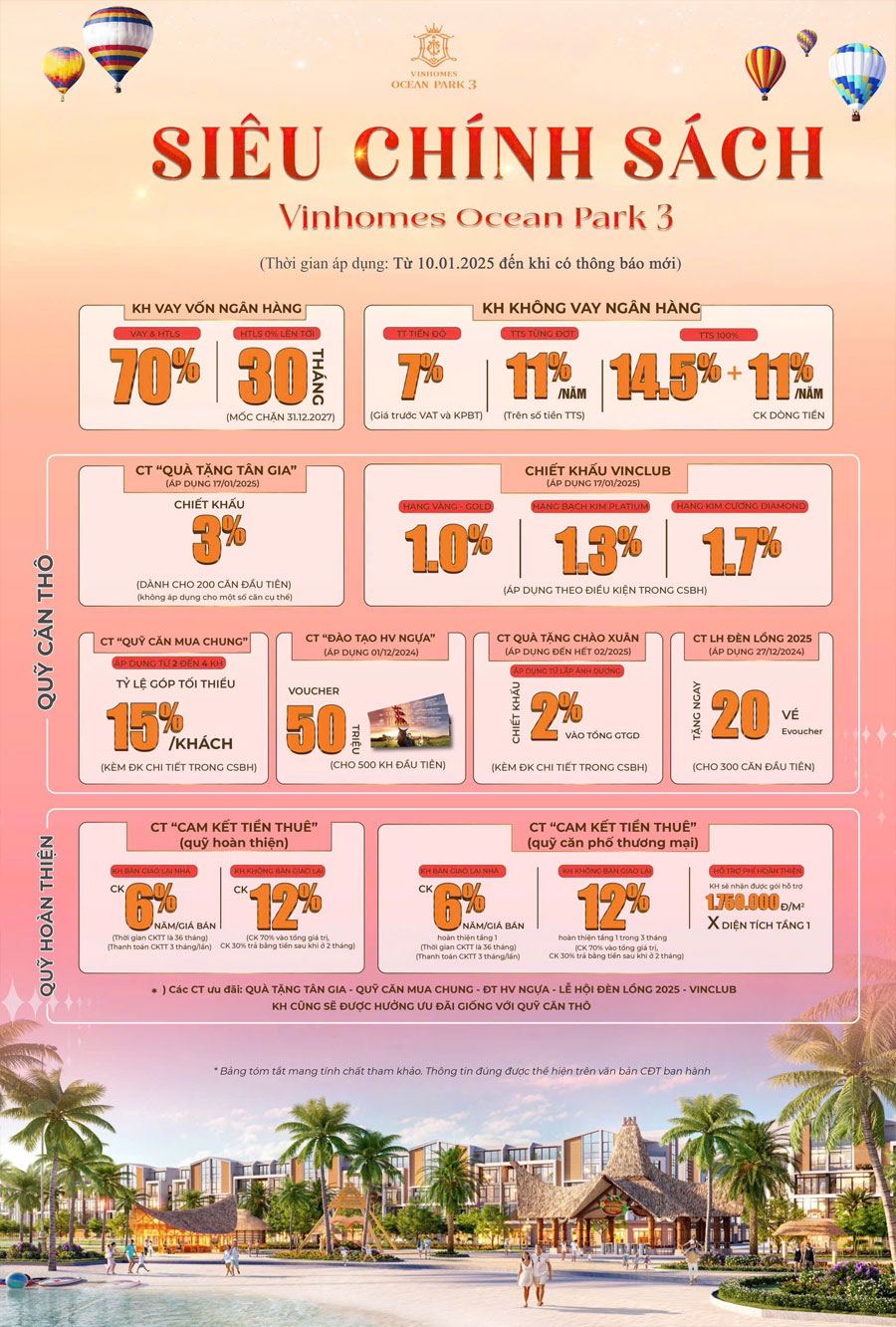 - Ưu đãi thanh toán sớm 8 – 11% / số tiền thanh toán sớm
